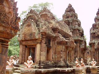 While in Cambodia we saw lots of folks taking pictures of kids, especially kids living in poverty. It's easy to find such photo opportunities in a country like Cambodia, which is one of the poorest countries in the world (~$480 UDS/year average per capita income). We saw a lot of poverty even in Siem Reap and the surrounding areas (which I'm sure is much more wealthy of a place than most Cambodian towns and villages). But this is the only picture we have that even hints at what we saw. Why? It didn't seem right. If you look at websites about Cambodia, or books of pictures in Cambodia, you see lots of pictures of kids who have nothing, who were born into and are living with families who have nothing. We even had kids offer to let us take their picture, for $1 USD. But aside from whether we gave them money or not, or whether we bought things from them or not - just taking their picture, even if it involved paying them, just didn't seem right. It's the wrong relationship people should have to such children. What is the right relationship? I don't really know. But what I saw folks doing - that's not it. It came off like folks taking pictures of animals at the zoo, or famous sites, not of people. Like the only value that child had at that point was their value as a photographic subject. The whole scene was lacking in humanity, in compassion. It felt wrong. So the only picture we ended up with like that was one we took by accident - we weren't meaning to take a picture of the child there, but looking at the picture afterwards it becomes the main subject. [kids are generally hanging out throughout all the sites we saw - we tried quite hard to keep them out of photos we took]