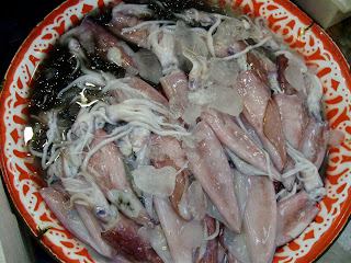 We went to a noodle shop the other day that had a jar of squid on the table in front of it. Sam clarified that it was dehydrated squid that they were rehydrating. It looked like a science experiment, but tasted quite good - a consistency sort of like beef tendon (spongy).